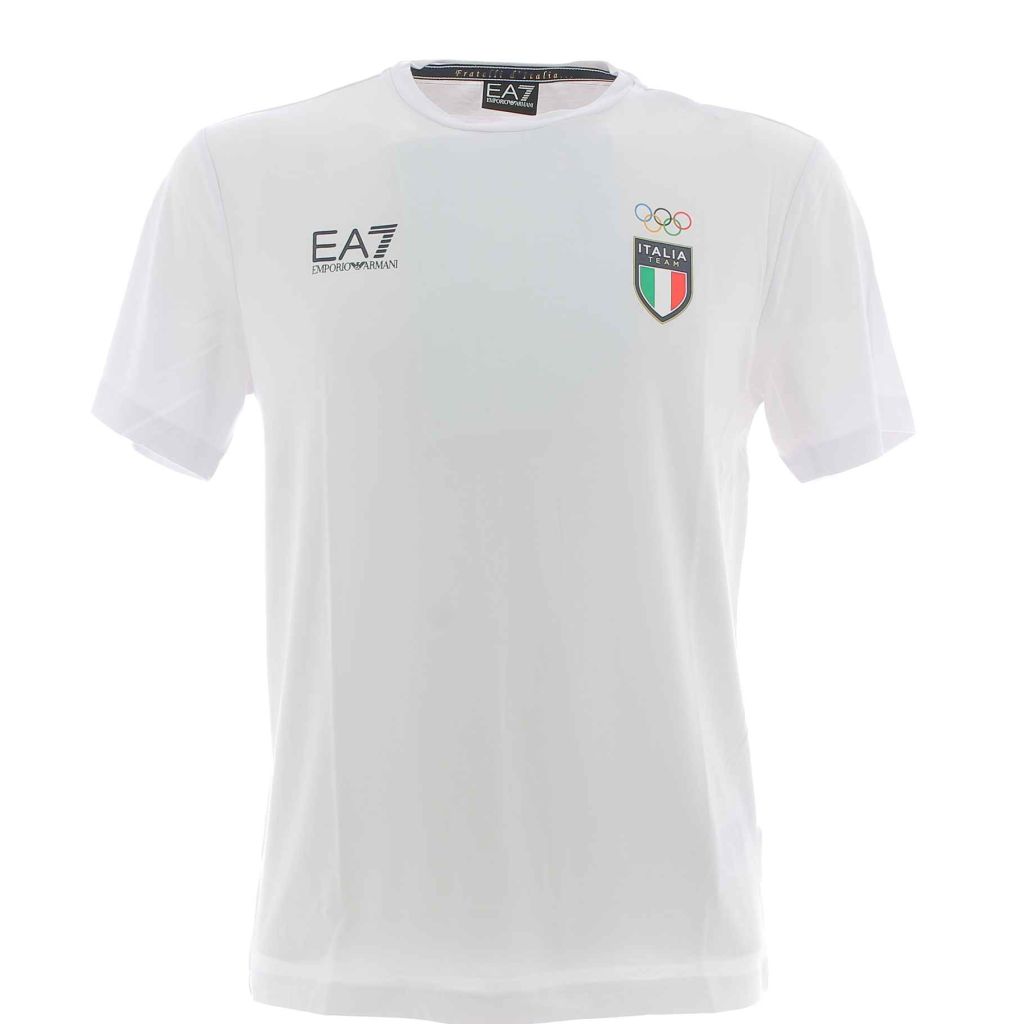 T shirt manica corta Uomo EA7 Emporio Armani Olimpiadi 2024, leggermente elasticizzata. Logata Italia nella parte posteriore e logo EA7 nella parte anteriore con logo Italia Team. Il tessuto e' in Jersey composto da 62% poliestere, 33% viscosa e 5% elastain. La t shirt e' la divisa ufficiale dell'Italia alle Olimpiadi 2024