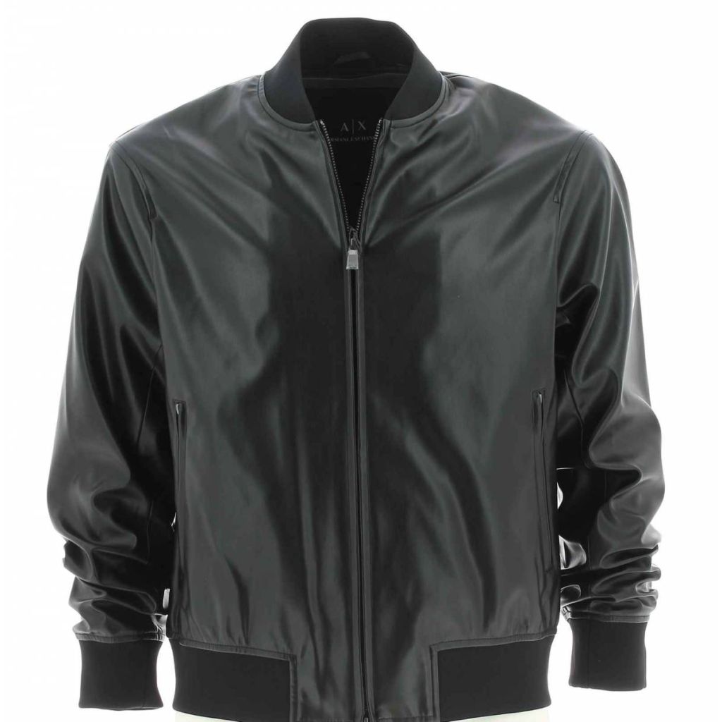 Giacca Bomber in Ecopelle Nera A|X Armani Exchange Uomo, con zip Centrale con Doppio Cursore per aprirla anche dal basso, due tasche laterali con zip, una tasca interna e polsini e fascione in vita leggermente elasticizzati. Il tessuto e' al 100% in Poliuretano