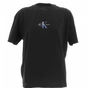T Shirt Calvin Klein Donna Manica Corta con Scollatura Bardo' in Tinta Unita Nera con Logo CK sul Tape Elasticizzato. Il Tessuto e' al 95% Cotone e 5% Elastain.