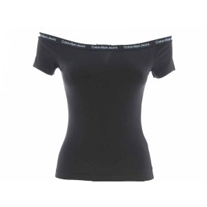 Top Donna Calvin Klein con Lavorazione del Tessuto a Cannete'. Il Top e' Elasticizzato e il Tessuto e' al 94% Cotone e 6% Elastain