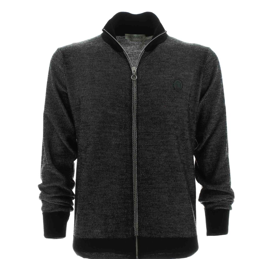 Maglia Misto Lana Full Zip Trussardi Grigio/Nera